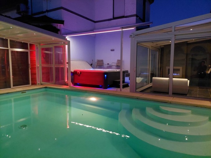 U beschikt over: jacuzzi, haman, sauna, tropische regendouche, sterrenhemel met ligzetel, verwarmd voetbadje met scrubzout.