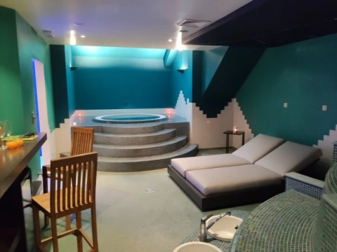 U beschikt over: jacuzzi, haman, sauna, tropische regendouche, sterrenhemel met ligzetel, verwarmd voetbadje met scrubzout.