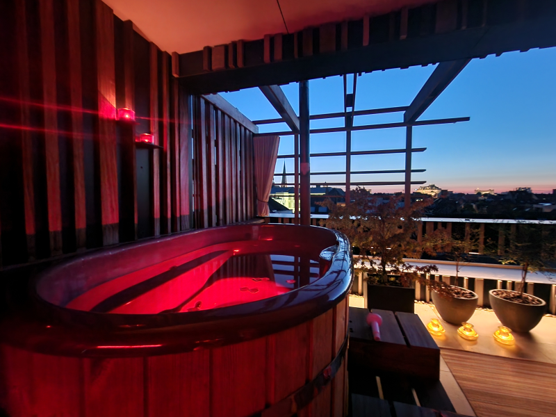 Geniet van onze unieke ‘sauna with a view’ op een vlot bereikbare plek in Gent centrum. Onze sauna combineert de rust van het Baudelopark en de Leie met een indrukkende uitkijk op de torens van Gent. De panoramisch sauna en hot tub geven je samen met de verschillende relaxruimtes en de zonneterrassen de mogelijkheid om helemaal te ontspannen. We zorgen voor een unieke beleving op maat met geurtjes, scrub, berkentakken, drankjes en hapjes. Kies voor een beleving naar wens of vraag ons gerust naar een voorstel op maat. We zorgen voor jouw onvergetelijke en ontspannende quality-time.
