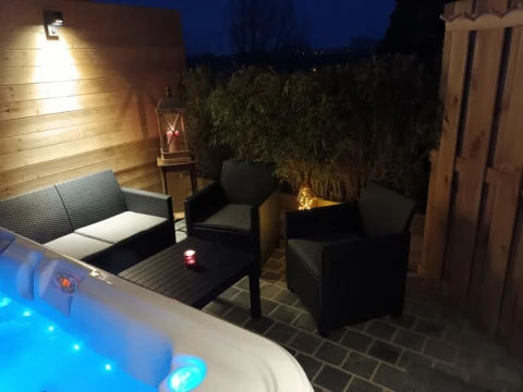 Faciliteiten: - De ruime moderne whirlpool bevindt zich op het overdekt buitengedeelte (vroeger hooischuur) en is uitgerust met krachtige massagejets voor 4 personen. - De Finse sauna heeft mogelijkheid tot opgieten voor de echte sauna liefhebber! - Er is een gezellige Infrarood sauna voor 2 personen en met 6 stralers. - Ruime regendouche om je even op te frissen evenals gratis douchegel en shampoo. - Er is een haardroger aanwezig. - Relaxruimte in Oosterse en Zwitserse stijl. - Gezellige zithoek binnen en buiten om te ontspannen en te genieten van een drankje of een hapje. - Minibar met keuze uit rode en witte wijn, cava, champagne, Duvel, kriek Lindemans, cola, cola zero, bruisend water en gefrituurde hapjes die je achteraf kan afrekenen (eigen consumpties zijn niet toegestaan). - Klein buitengedeelte met gezellige zithoek en panoramisch uitzicht op de Zwalmvallei om even een luchtje te scheppen. - Voor optimaal comfort is de binnenruimte uitgerust met airco. - Gratis Wi-Fi - Badlinnen, badjas en slippers kun je huren. U kan uiteraard alles zelf meebrengen.