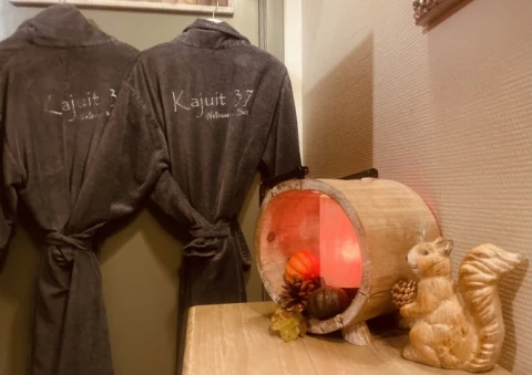 Kajuit37 is een Privé Wellness centrum waar je weliswaar niet echt het water op vaart, maar waar we je in gedachten willen laten wegdromen van godvergeten stranden in een sfeer van gezelligheid, rust en romantiek. Het centrum bestaat uit 2 verschillende wellness units met dezelfde faciliteiten, zoals Hammam of stoombad, infraroodcabine, Finse sauna, jacuzzi, regendouches, koude kantel emmer, koude watervaldouche, relaxruimte buiten en binnen, minibar.