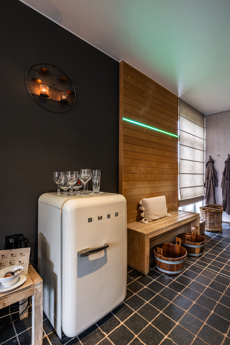 De wellnessruimte binnen is volledig privé.