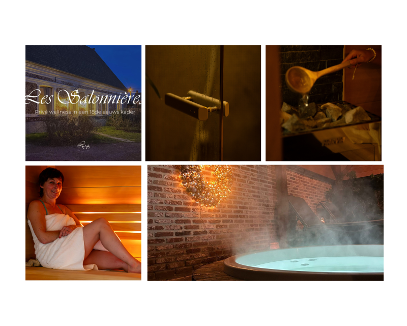 Les Salonnières beschikt over 2 privé wellnessunits. Eén voor 2 personen en één voor 2 à 4 personen. Elke unit beschikt over een hammam, Finse Sauna, medische infrarood, regendouches, kantelemmer, overdekte buitenjacuzzi, een relaxruimte binnen met echt houtvuur, een buitenrelaxruimte, de mogelijkheid voor eigen muziekkeuze, mogelijkheid voor relaxatie-massage*, gezichtsverzorging* en -massage*.
