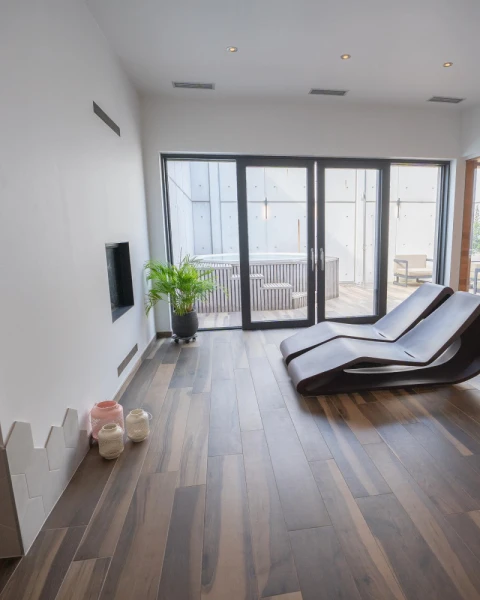 Onze privé wellness beschikt over een ruime belevenisdouche, infraroodhoek, hamman, Finse sauna en jacuzzi. Dit in een gezellig kader met een open haard en knusse zithoek.