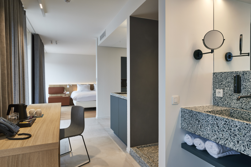 Laat u verwennen in onze nieuw ontworpen Wellness Suite, een toevluchtsoord van comfort en luxe. Uw verblijf wordt een onvergetelijke ervaring met onze state-of-the-art voorzieningen, waaronder een privésauna, een bubbelbad, een belevenisdouche en warmtestralers die samen een oase van rust creëren. De suite is uitgerust met moderne gemakken zoals een flatscreen-tv, koffiezetapparaat, minibar en gratis high-speed WiFi, verzekerd voor uw comfort en gemak.