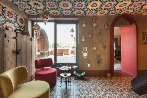 Stap even uit de dagelijkse drukte en kom tot rust in Riad Nagiba, een bijzonder smaakvol Arabisch ingerichte wellness op het dak van centrumstad Eeklo.