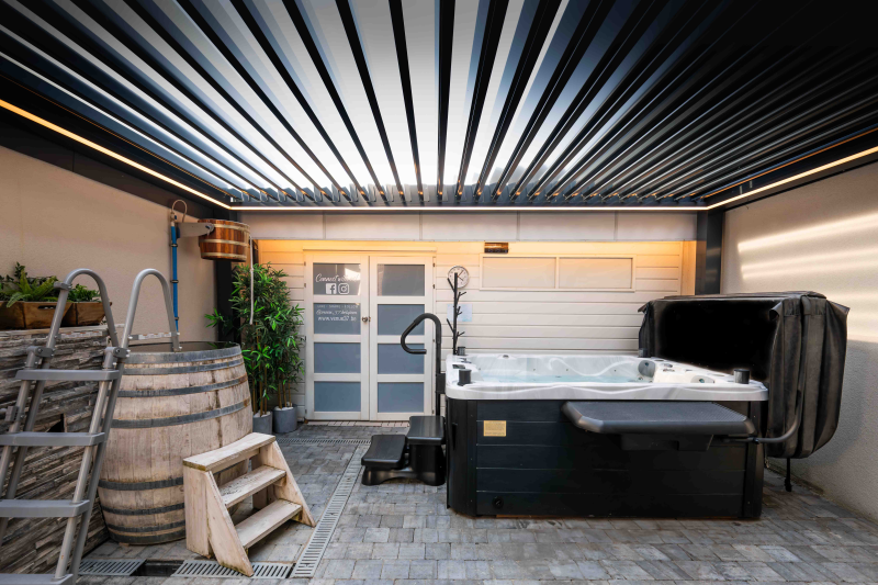 Wij stellen u een prive wellness complex voor met Finse sauna, infraroodsauna, bubbelbad, dompelbad en stortemmer. Er is ook aromatherapie, kleurtherapie en himalaya-zoutverdamping aanwezig. Geniet van een inbegrepen heerlijke massage in onze hightech massage-zetel van HealthMate. Dit alles in een absoluut privé kader zodat je heerlijk ontspannen zonder zorgen.
