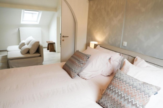 Boven vind u de 2 ruime suites met kingsize Boxspring, elk eigen badkamer en toilet, handdoeken, ijskast en douche artikelen van Rituals.